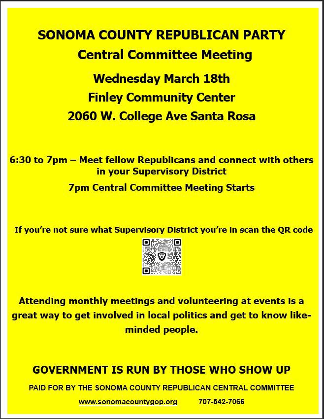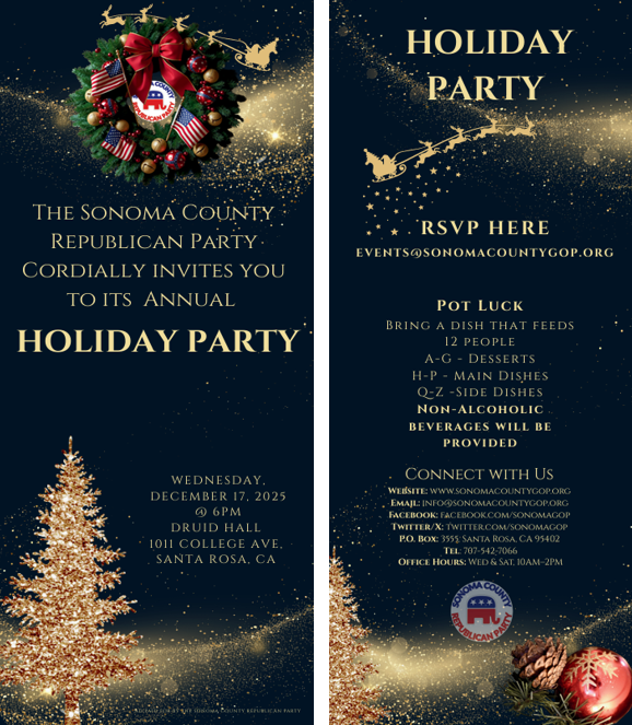 The Sonoma County Republican Party is funded locally from voters like yourself. We receive no funding from the Republican National Committee nor California Republican Party.