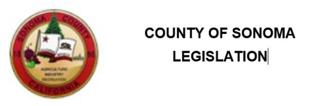 Below is important current local legislation the Sonoma County Board of Supervisors is considering that impacts all residents Clicking on each topic will take you to the full text of the legislation, attachements and other information . As more information becomes availbale for each topic it will be added.