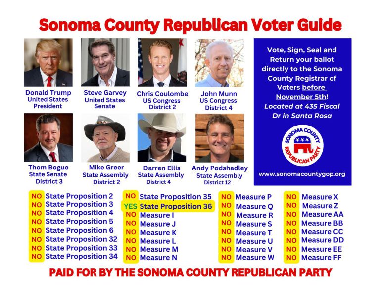 Please make sure you Vote, Sign, Seal and Return your ballot to the Sonoma County Registrar of Voters before November 5th!